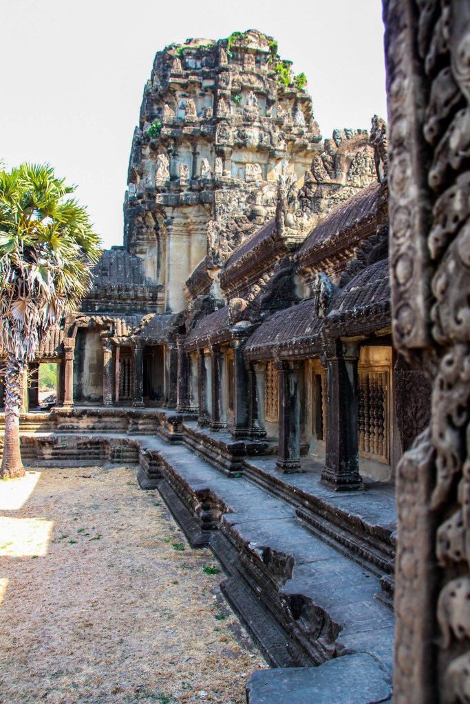 The large temple was originally built for King Suryavarman II, in the 12th century as the City Temple. Angkor meaning City and Wat meaning Temple. It was originally built as a Hindu temple and later transformed into a buddhist temple. Its grand design boasts the architectural style of the Khmer empire of the time. Some characteristics that stood out to me were the five prominent towers, that have tips resembling lotus buds. In Cambodian culture, the lotus symbolises enlightenment and purity. I also really enjoyed perusing the outer corridors which showcase intricate carvings that are so detailed, and adorn almost every inch of the sandstone walls, and columns that make up this temple. These carvings offer a glimpse into the history of the Khmer civilisation and tell stories from Hindu mythology.