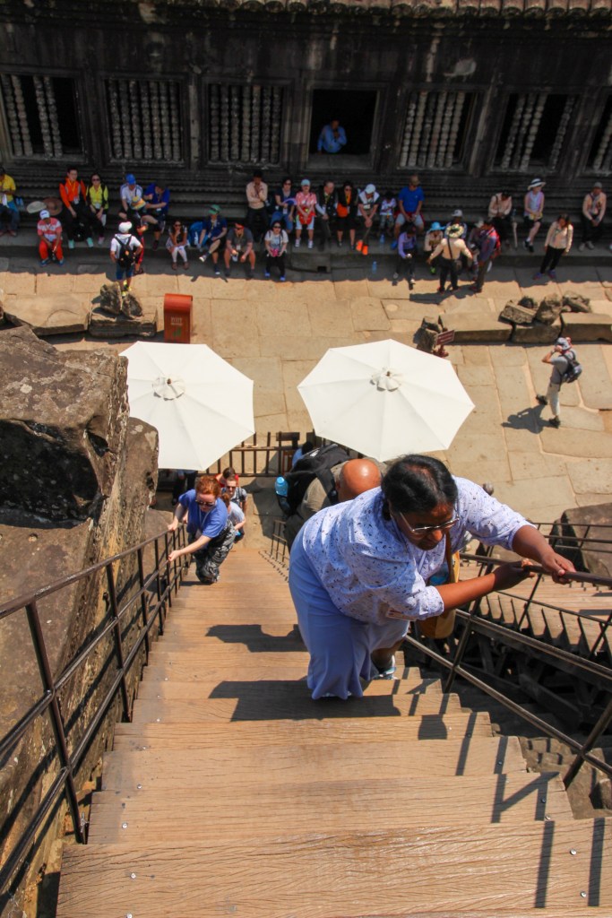 To get to the very top of the temple mountain, there was an extremely steep climb up some very narrow stairs. I was so nervous, I tried not to look down. Our guide explained, that the point of the difficult climb was to make the people realise that the path to enlightenment is not easy and that only the upperclass were allowed at the top of the temple. Once I reached the top, I was amazed by the breathtaking, panoramic view, that reached as far as the eye could see. It was amazing to see the precise symmetry of the below structures.