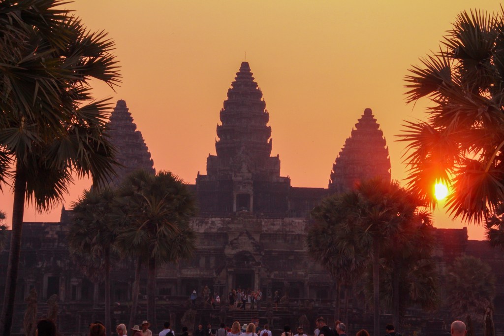 - I highly recommend waking up early to watch the sunrise over Angkor Wat. It is truly something special watching the rising sun transition from purple haze to a burnt orange which silhouettes the majestic temple. And you can buy $1 coffee while you are there.