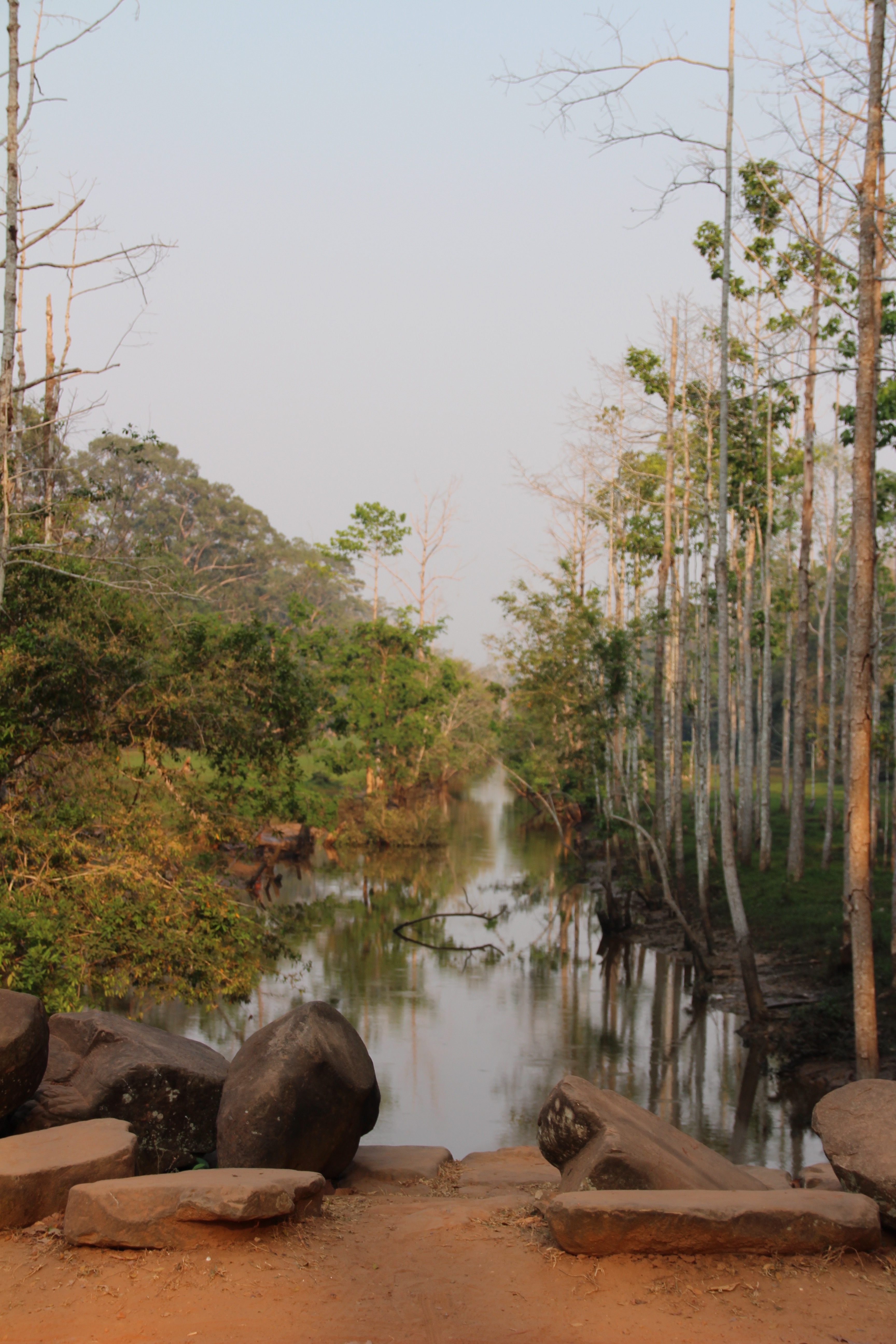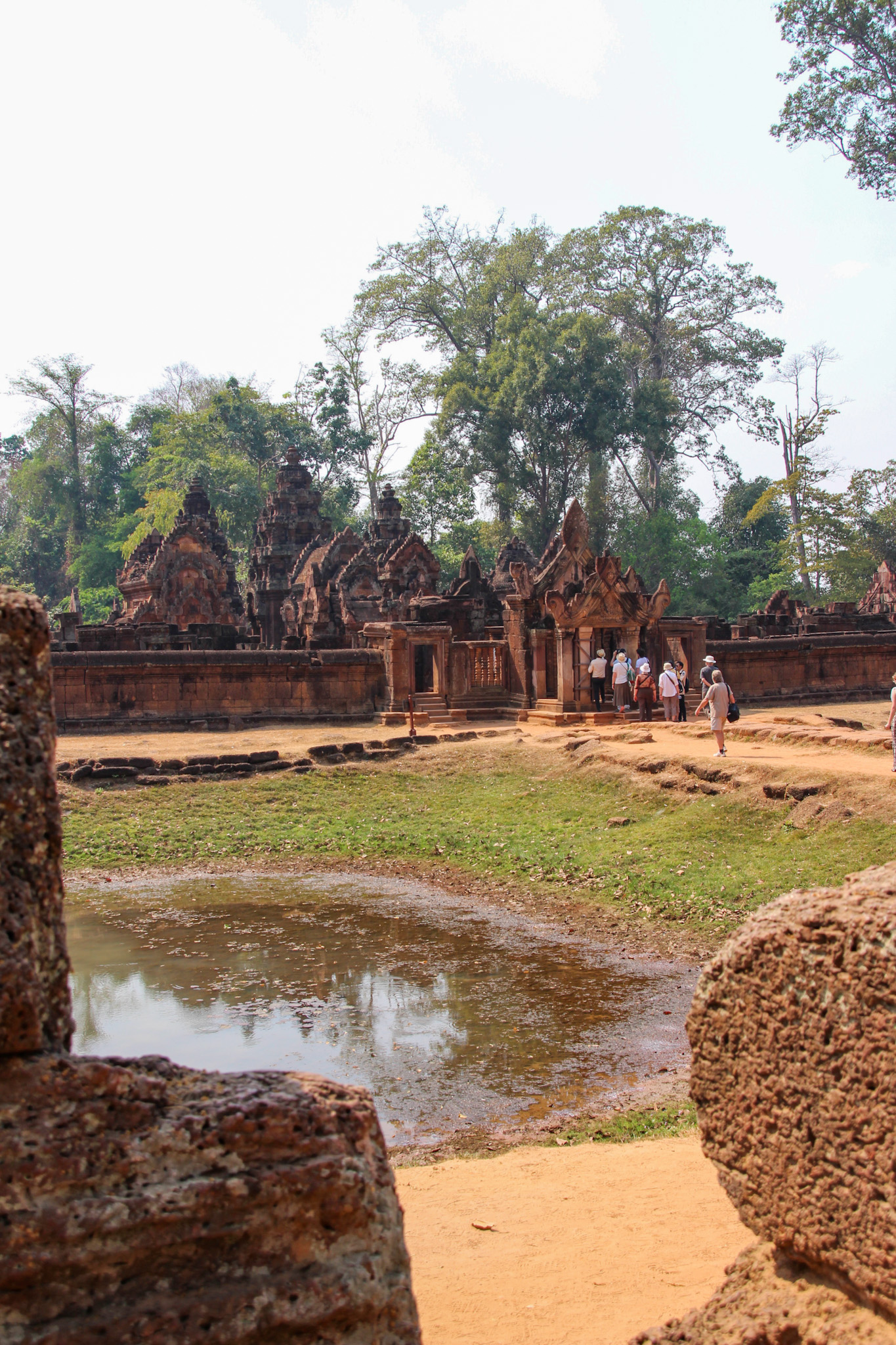 The temple grounds are surrounded by a moat and an outer wall, which is 3.6 kilometres long. There is a long, stone path heading towards the main temple structure. On either side of this path are two old libraries that sit in front of two large ponds. During sunrise, these ponds offer a beautiful reflection of Angkor Wat. They were a little dry during my visit, as it was the dry season with little greenery. When I reached the perimeter entrance, I entered through the most grand entry point in the centre, which was dedicated as the Royal entry. At the very centre of the complex are three tiers, which form temple mountain. Our guide explained to us that he temple represents Mount Meru, which in Hindu mythology refers to as the dwelling place of the gods. Each tier had 4 ponds, which would have been filled with holy water. Citizens would cleanse before participating in spiritual practice. There were rooms for meditating in prior to moving up to the next tier.