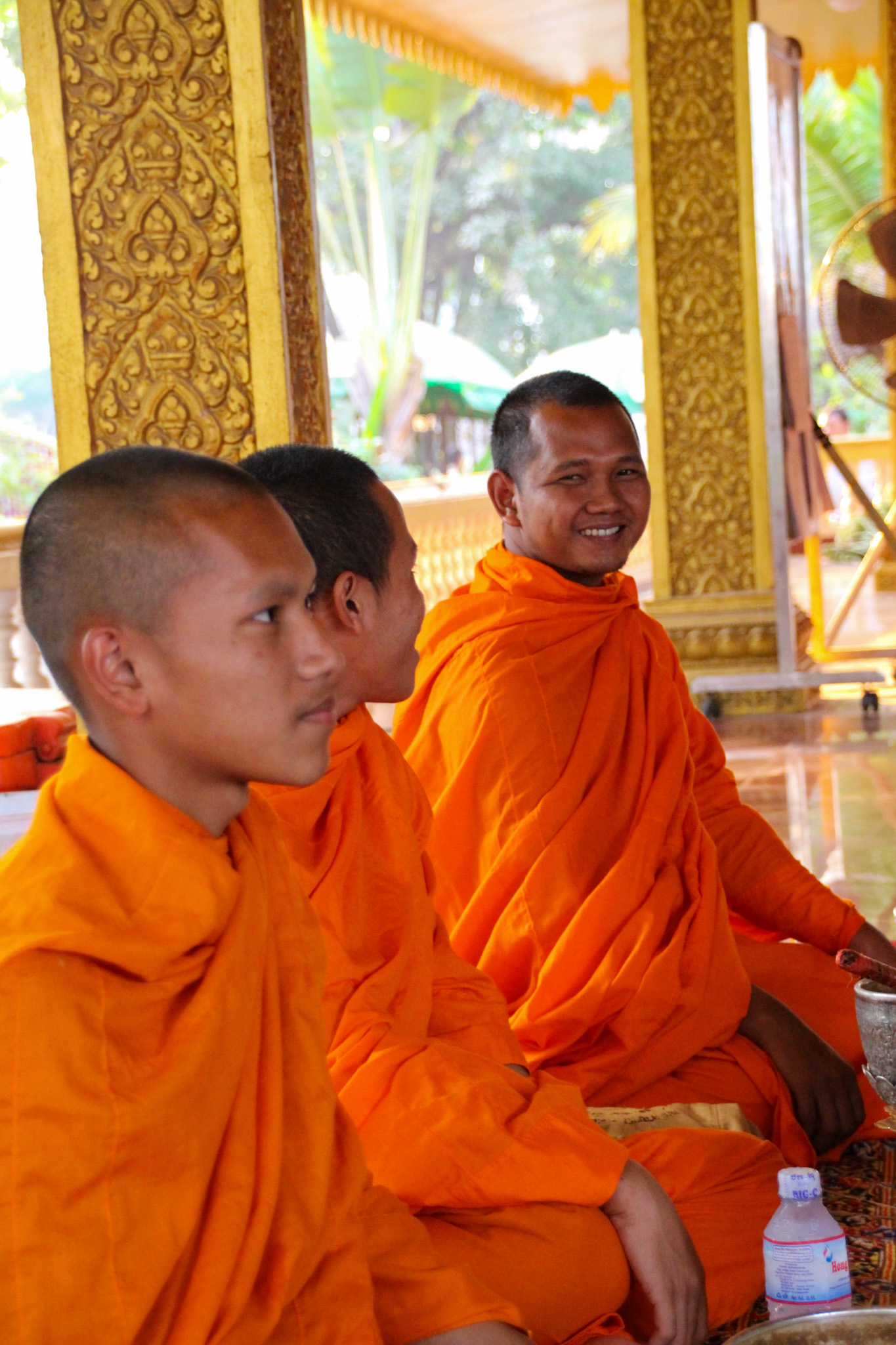 Once we checked in to our hotel, we walked 5 minutes down the street to the Royal Independence Gardens. Here we visited the Preah Ang Chek Preah Ang Chom pagoda, where locals were playing drums while others were offering gifts to Buddha, creating a calming ambience. Male monks were blessing locals with holy water, which is believed to purify and bring positive energy to the recipient. I was blessed by a Bhuddist nun (known as bhikkhuni), who tied a red braided string around my wrist whilst chanting a Bhuddist prayer. Unfortunately, I could not understand what she said as I do not speak the language, however it did feel like a special moment. My guide later told me that the red braided string symbolises the removal of unfavourable thoughts from your life and offers good luck, health and protection.