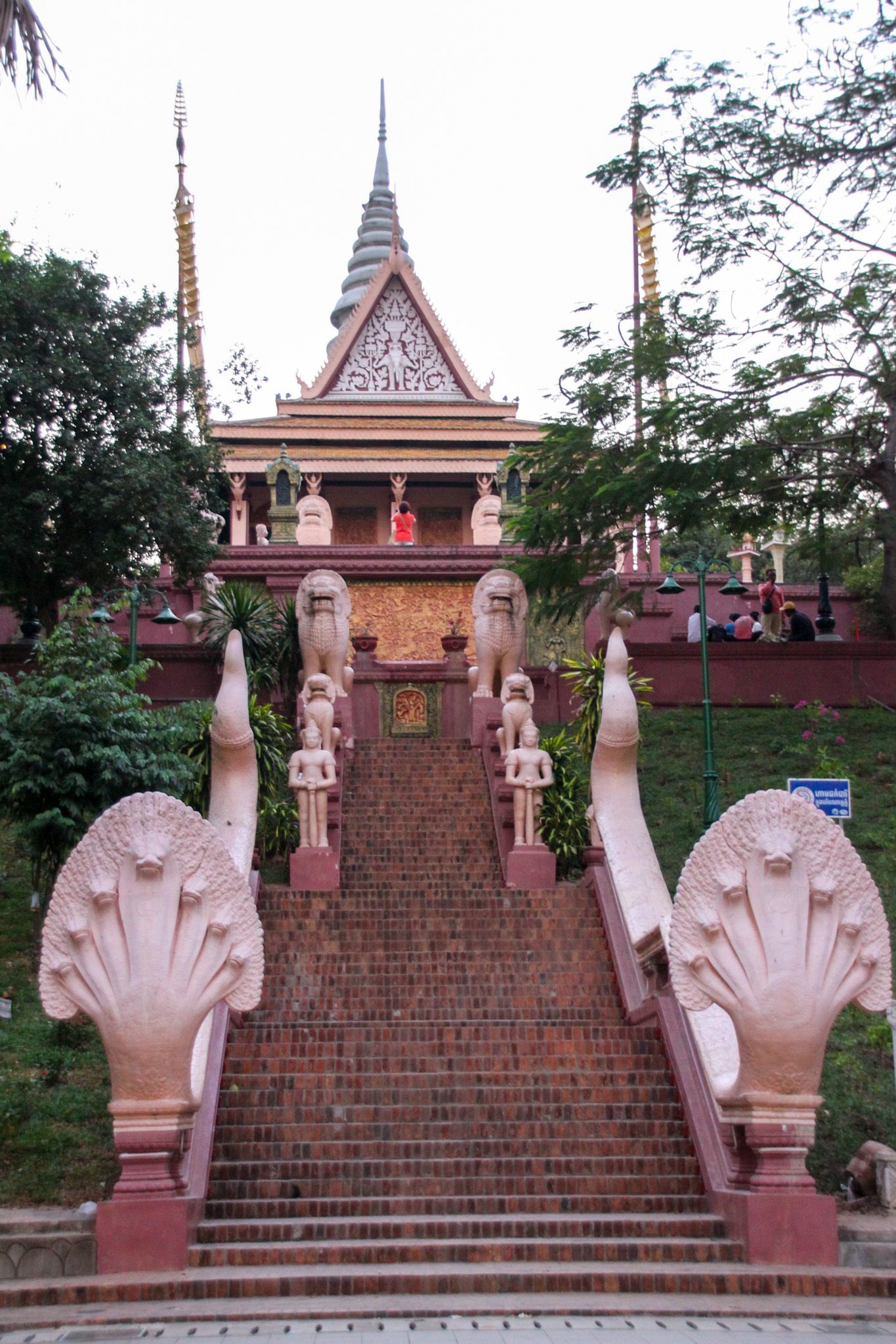 After we freshened up at the hotel we grabbed a remork and headed out for dinner. On the way, we drove past Wat Phnom, which is a temple in the centre of the city. We also stopped to admire a statue of the founder of Phnom Penh who surprisingly was a woman named, Yeay Penh. Our guide told us the story of how the city was founded, which according to legend, the wealthy widow, Yeay Penh (also known as Grandmother Penh), found four Buddha statues inside a tree trunk on the river. She built the temple Wat Phnom to house the statues which is what tourists can visit today. We unfortunately did not have time to visit. But I will definitely add this to the bucket list next time.