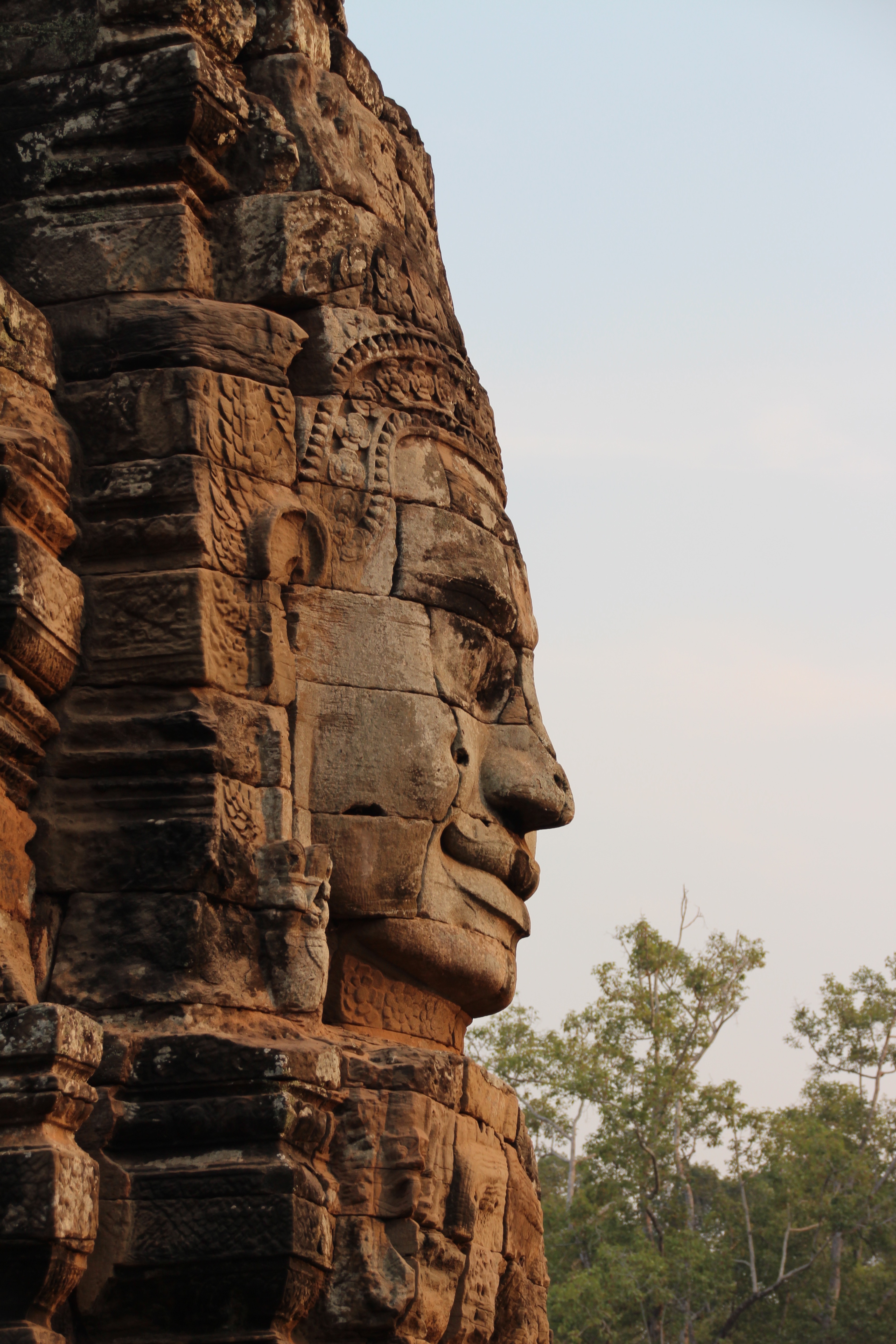 Before heading back to the hotel we explored the ancient city Angkor Thom, which was once the capital of the Khmer Empire. It is surrounded by a large wall with grand entrances on either side and many different ruins can be found within the city grounds. In the centre, stands the unique Bayon Temple, which is known as the ‘Smiling Faces’ temple. There are 216 smiling faces that are carved into the 37 towers that make up this temple, providing a very positive and happy ambience.