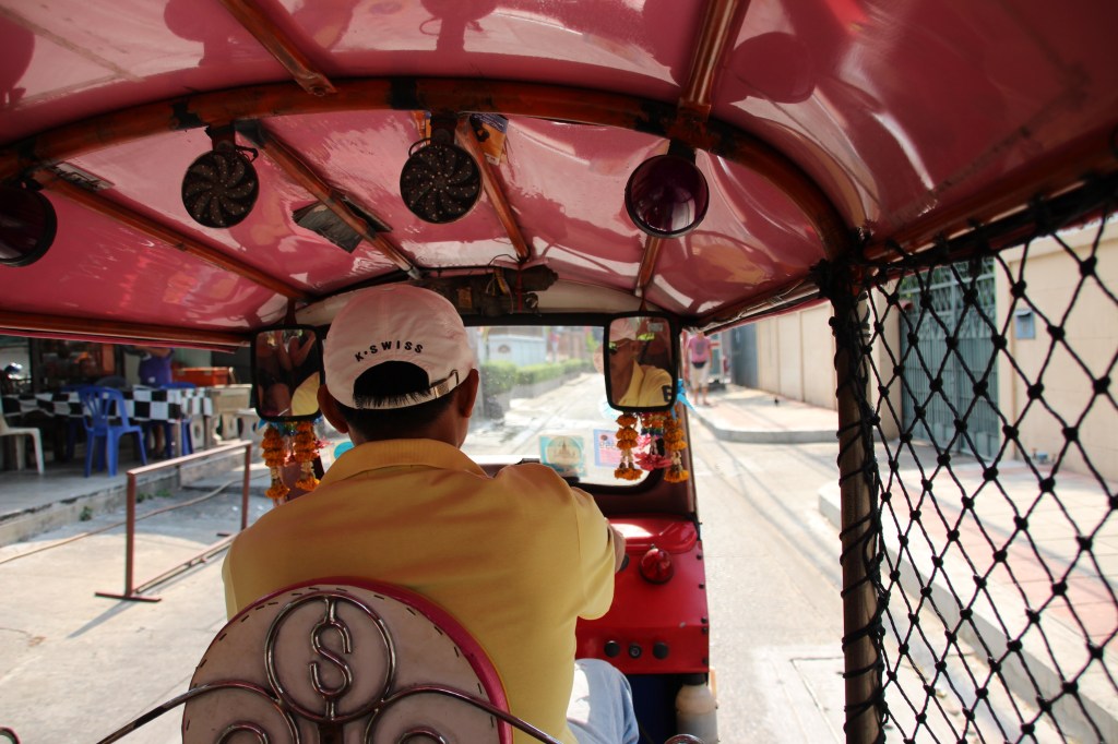Our tour did not officially begin until 6pm so we spent the morning exploring Bangkok. We got around by Tuk Tuk, which the driver took us to Wat Intharawihan. The temple is known for its large standing Buddha, which stands 32 metres high and is decorated with glass mosaics and 24 carat gold.